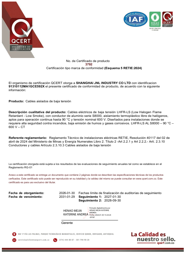 Colombia RETIE Certification for LHFR-LS (DSS_CRS24600)