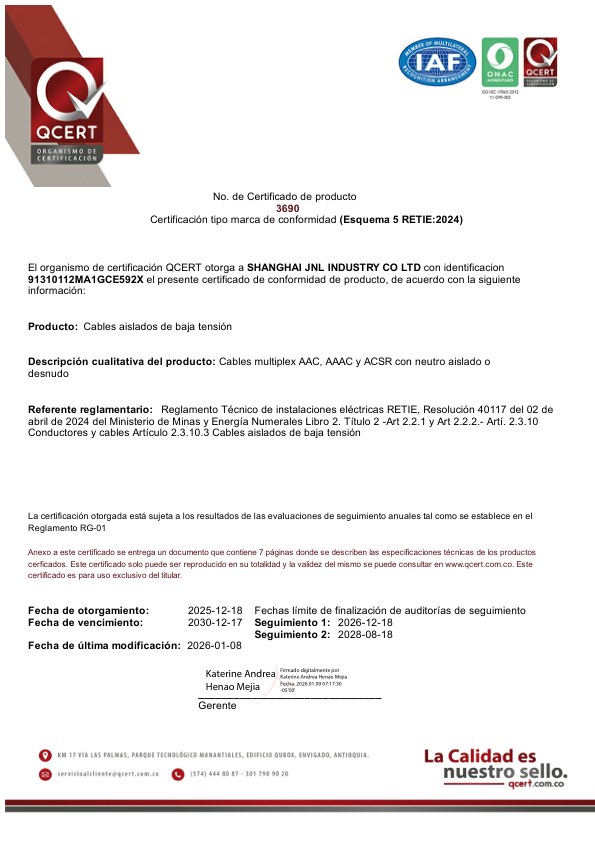 Colombia RETIE Certification for ACSR (DSS_CRS23489)